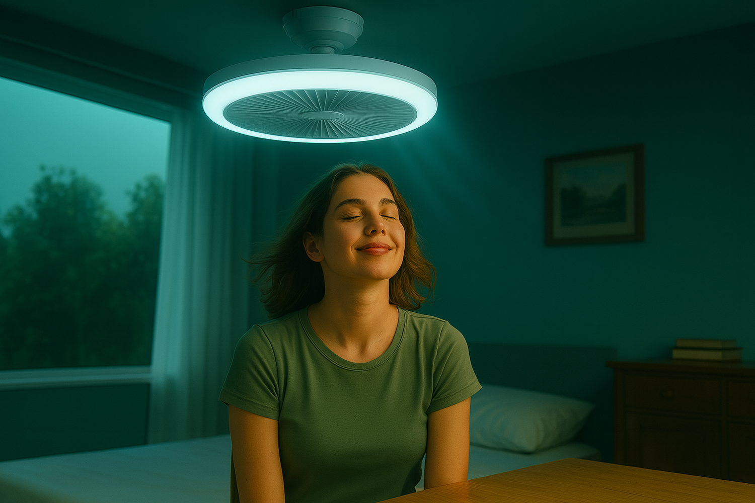 FreshGlow™ combina ventilación potente y luz LED regulable en un solo dispositivo compacto. Se instala en segundos, no ocupa espacio y refresca cualquier ambiente de manera silenciosa y uniforme.