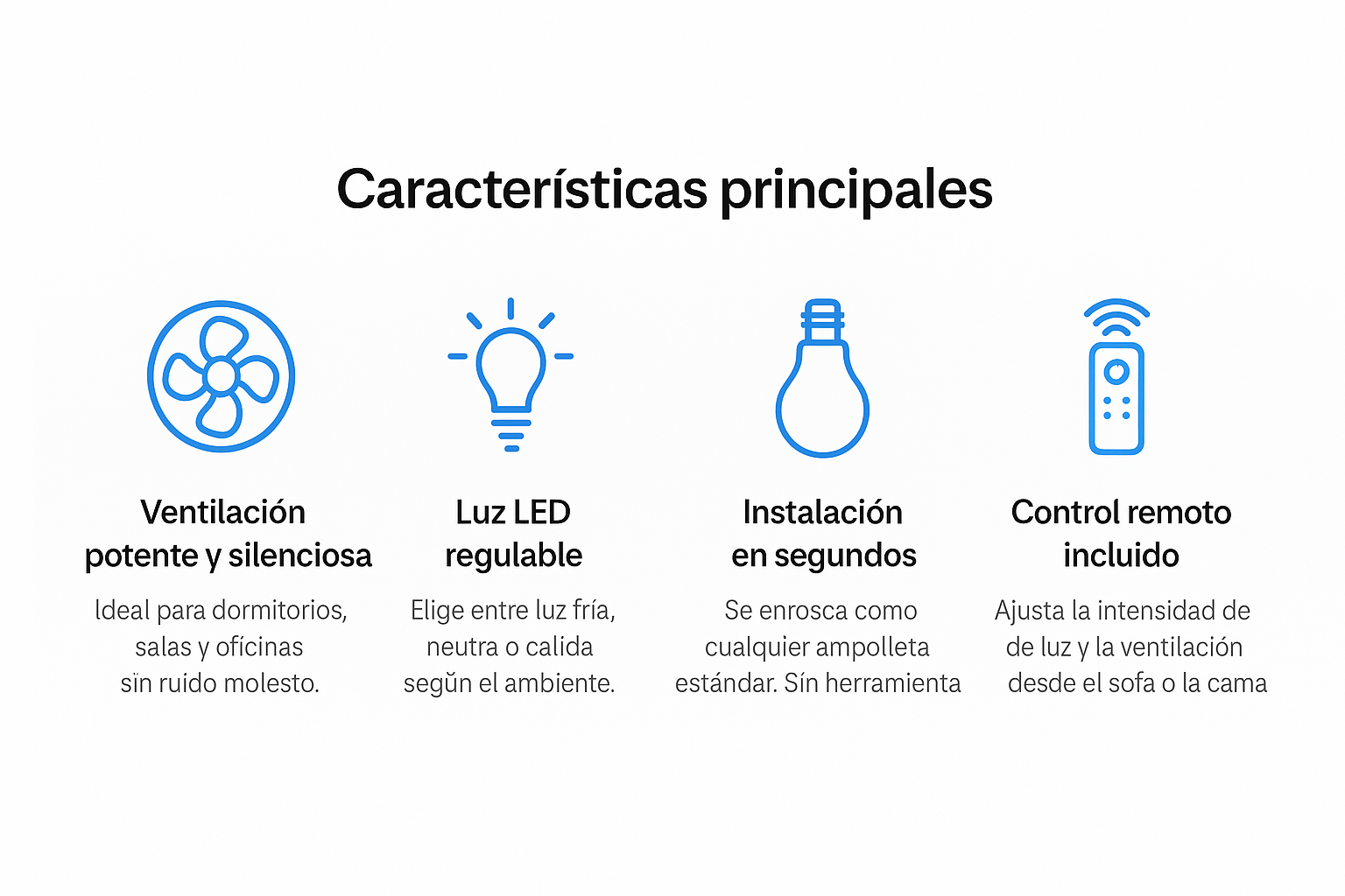 El ventilador más práctico para tu hogar. Iluminación LED + frescura en segundos